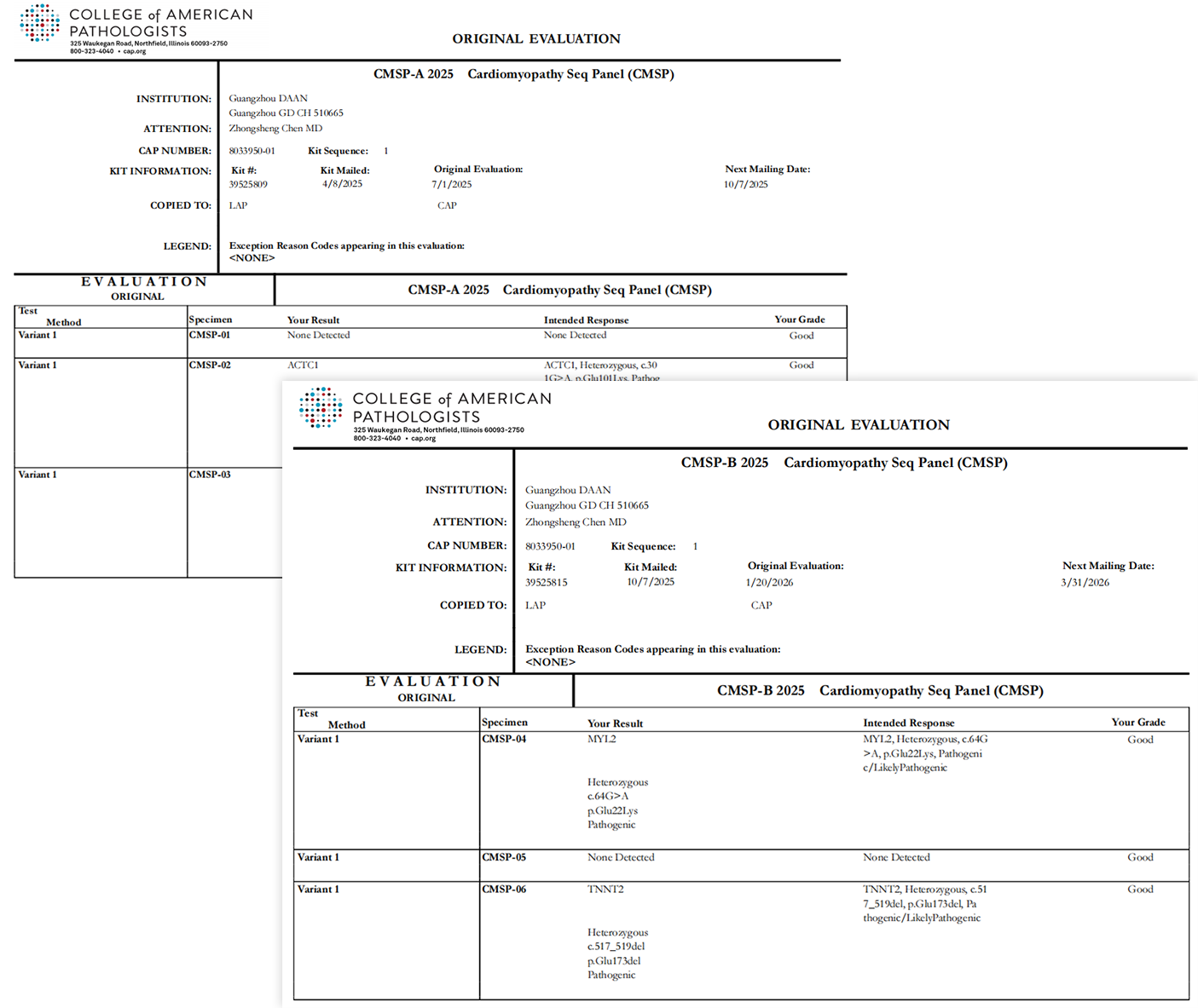 尤其在 CMSP 项目测评中,面对多个心肌病相关核心基因,澳网(中国区)提交的检测结果与预期响应完全吻合,全部斩获 “Good” 评级,展现了心血管系统遗传病精准检测的国际接轨能力。