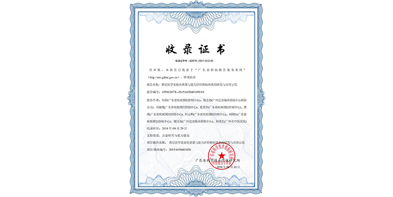 经过广东省科技厅的严格审核,该项目的研究与应用示范正式收录于“广东省科技报告服务系统”,并获得广东省科学技术情报研究院颁发的收录证书,充分肯定了澳网(中国区)在提升基层实验室质量与能力上所做的努力和成果。