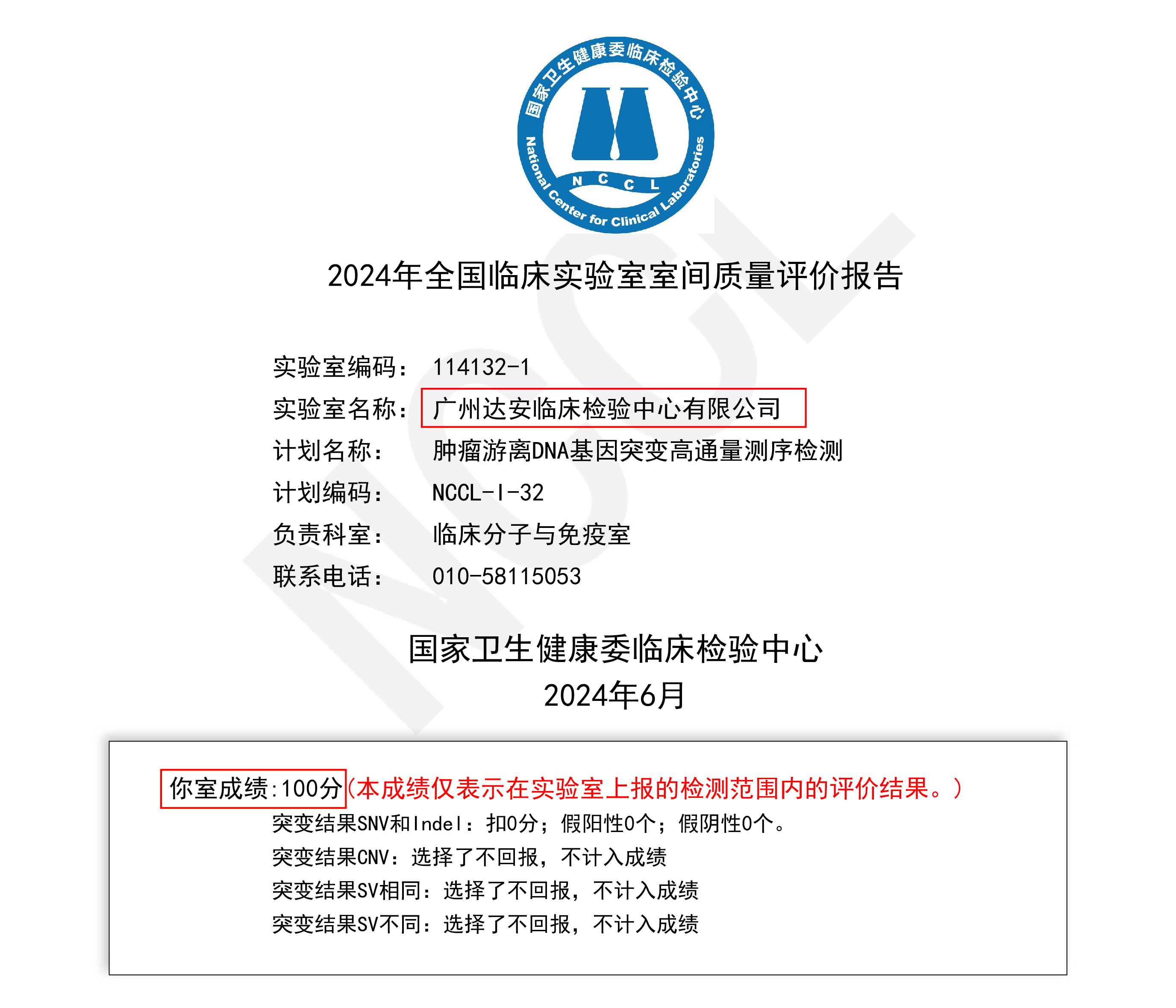 近日,国家卫生健康委临床检验中心(NCCL)公布了“2024年全国肿瘤游离DNA基因突变高通量测序检测室间质量评价”的结果,澳网(中国区)集团旗下的广州达安临床检验中心和上海达安医学检验所两地实验室以满分的优异成绩通过考核,所有样本检验结果与预期完全一致,再次证明了澳网(中国区)在肿瘤游离DNA(ctDNA)基因突变高通量测序检测方面的卓越实力和高精准性。